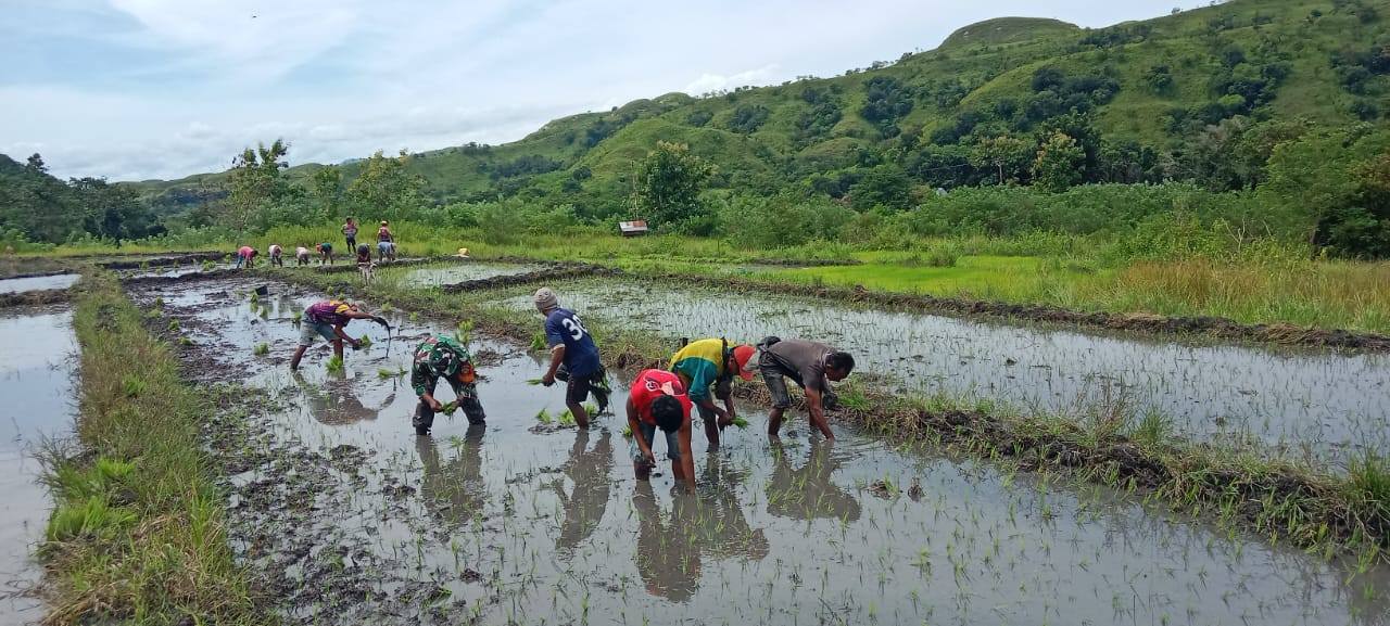 Babinsa Tabundung Bantu Petani dalam Penanaman Padi Sawah di Desa Persiapan Taralodu