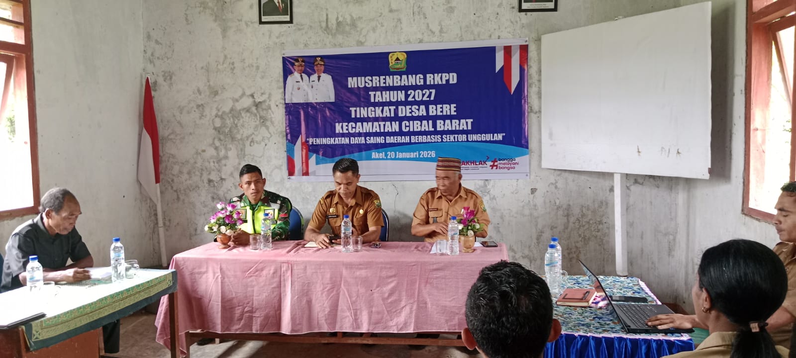 Manggarai, 20 Januari 2026 – Dalam rangka perencanaan pembangunan yang lebih partisipatif, Babinsa dari Koramil 1612-01/Ruteng, Pratu Dominikus Ndeok, turut hadir dalam Musyawarah Perencanaan Pembangunan Desa (Musrenbangdes) RKPD Tahun Anggaran 2027 yang diadakan di Aula Kantor Desa Bere, Kecamatan Cibal Barat, Kabupaten Manggarai. Kegiatan ini dihadiri oleh berbagai elemen masyarakat termasuk Camat Cibal Barat, Kepala Desa Bere, dan tokoh-tokoh lokal lainnya.