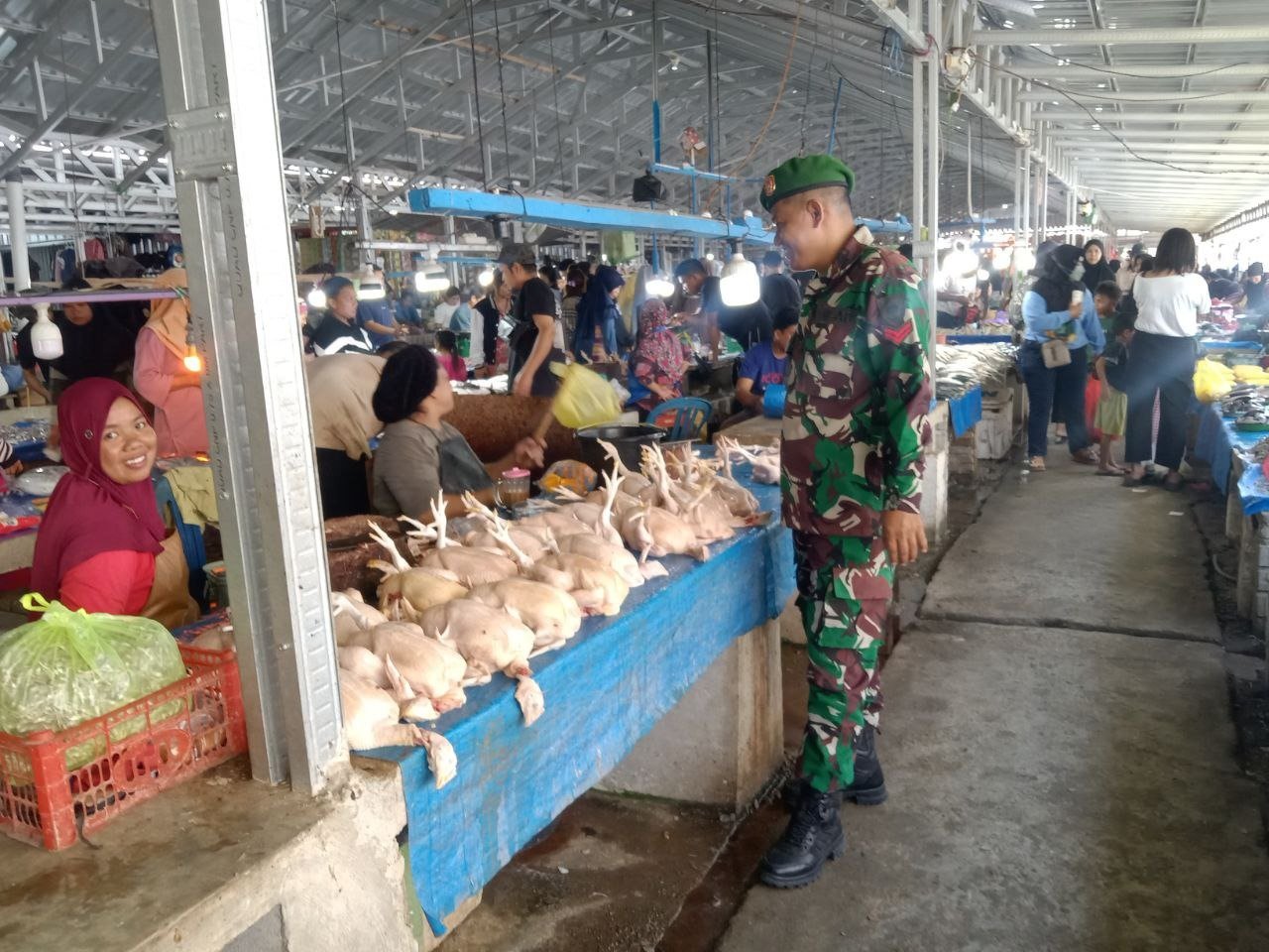 Kegiatan ini merupakan bagian dari tugas rutin Babinsa untuk memonitor langsung kondisi pasar, berinteraksi dengan pedagang, serta memastikan masyarakat dapat memenuhi kebutuhan sehari-hari tanpa kendala. Ketersediaan bahan pokok yang stabil dan harga yang terjangkau sangat penting untuk menjaga daya beli masyarakat.