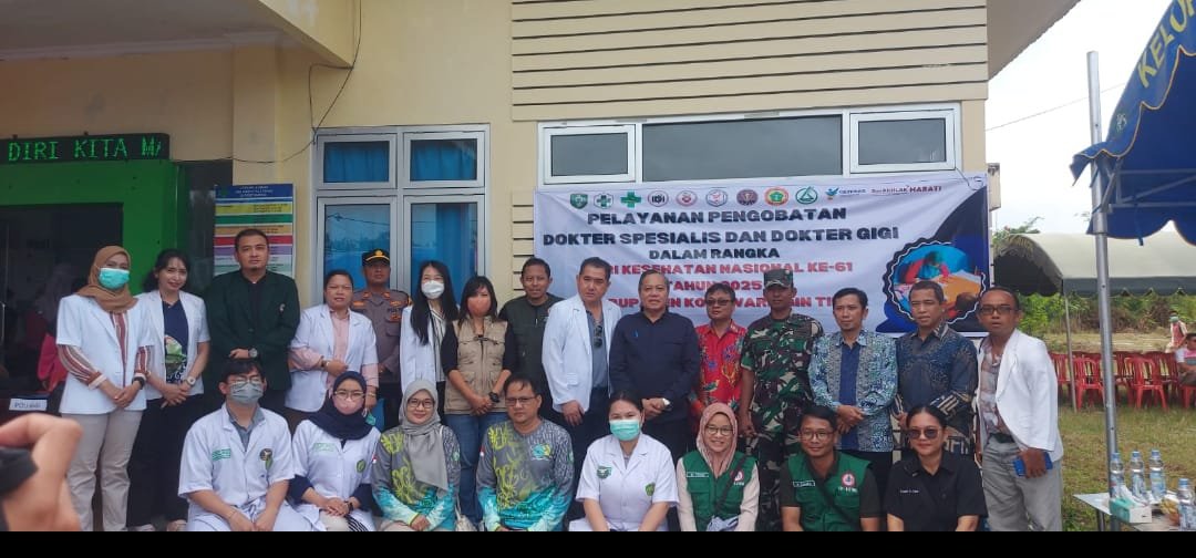 Kotawaringin Timur – Bati Komsos Koramil 1015-01/Mentaya Hilir Selatan Pelda Qodri menghadiri kegiatan Bakti Sosial pengobatan Spesialistik dalam rangka memperingati Hari Kesehatan Nasional (HKN) Ke 61 yang bertempat di RSUD Samuda, Kecamatan Mentaya Hilir Selatan, Kabupaten Kotawaringin Timur, Sabtu(25/10/2025)