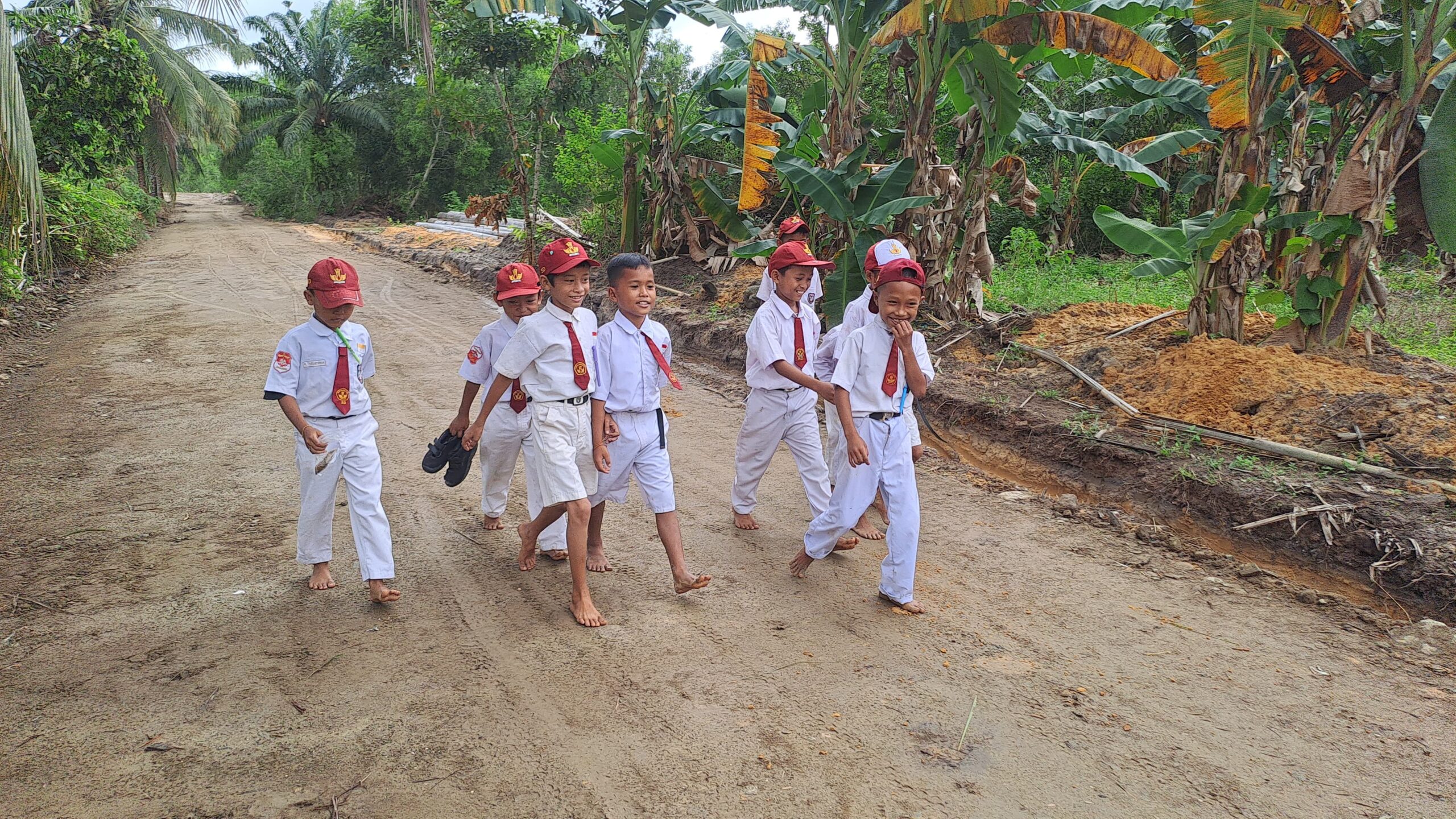 Azril, yang masih dalam tahap awal pendidikannya, menceritakan pengalamannya di masa lalu yang penuh keterbatasan. Dia menjelaskan bahwa jalan setapak yang ada sebelumnya begitu sempit, seringkali hanya muat untuk dilewati satu orang saja. “Gak bisa jalan berdua, karena jalannya sempit dan sering becek,” kenangnya, menggambarkan betapa sulitnya berbagi jalur atau berjalan bersama teman, terutama saat musim hujan ketika jalanan menjadi licin dan berlumpur.