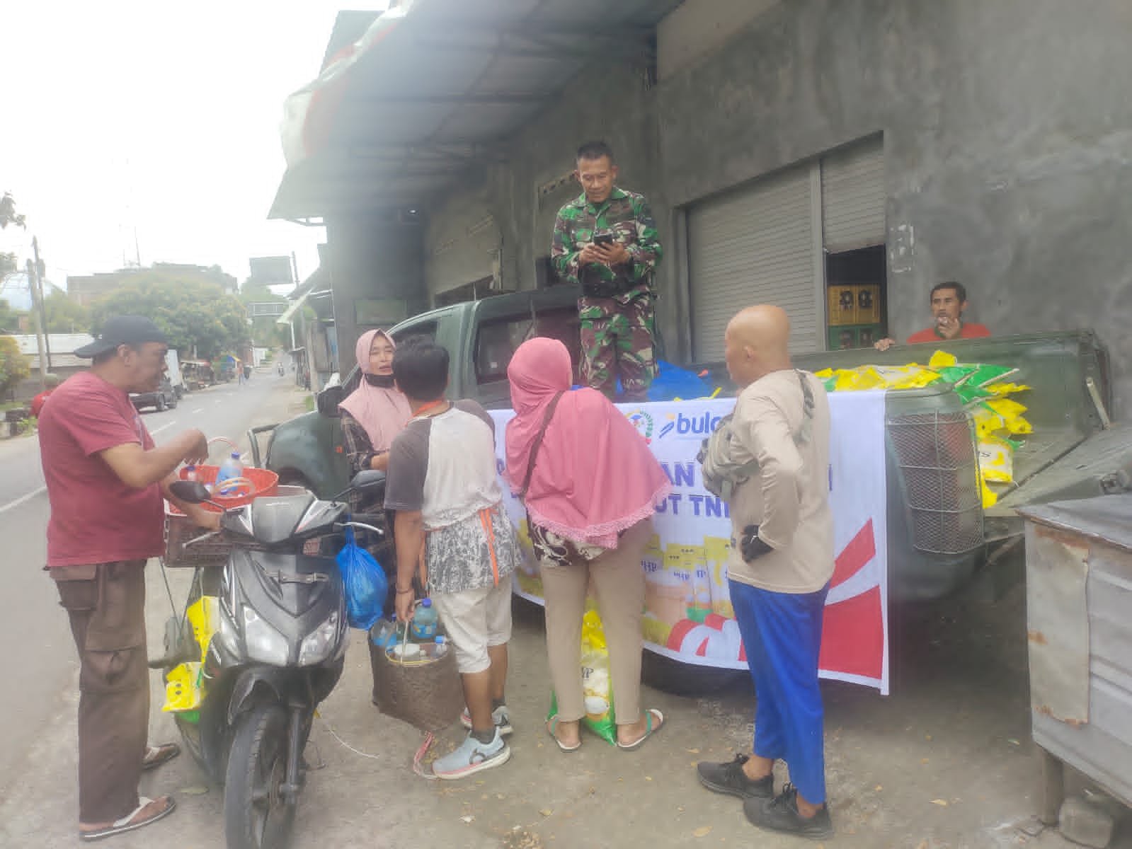 Kegiatan ini menjadi wujud kepedulian TNI berkerjasama dengan Bulog di setiap wilayah dengan menjual berbagi kebutuhan pokok terutama seperti beras dalam bentuk kemasan isi 5 kg dengan harga 58.000 rupiah.