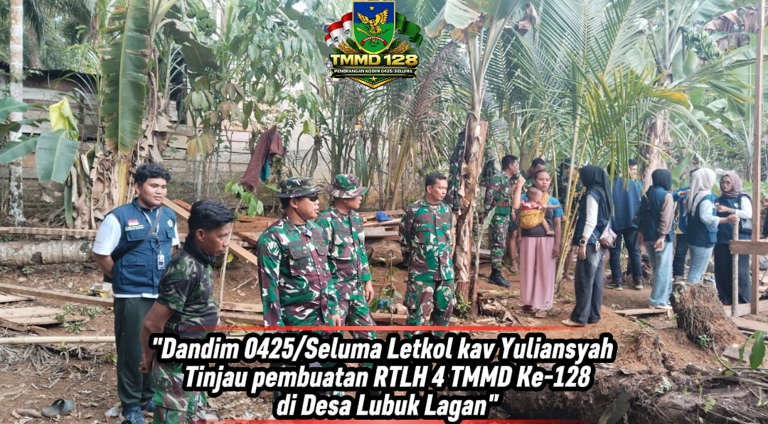 Seluma – Komandan Kodim (Dandim) 0425/Seluma Letkol Kav Yuliansyah meninjau langsung progres pembangunan Rumah Tidak Layak Huni (RTLH) ke-4 dalam program TNI Manunggal Membangun Desa (TMMD) Ke-128 di Desa Lubuk Lagan, Kecamatan Talo Kecil, Selasa (28/04/2026).