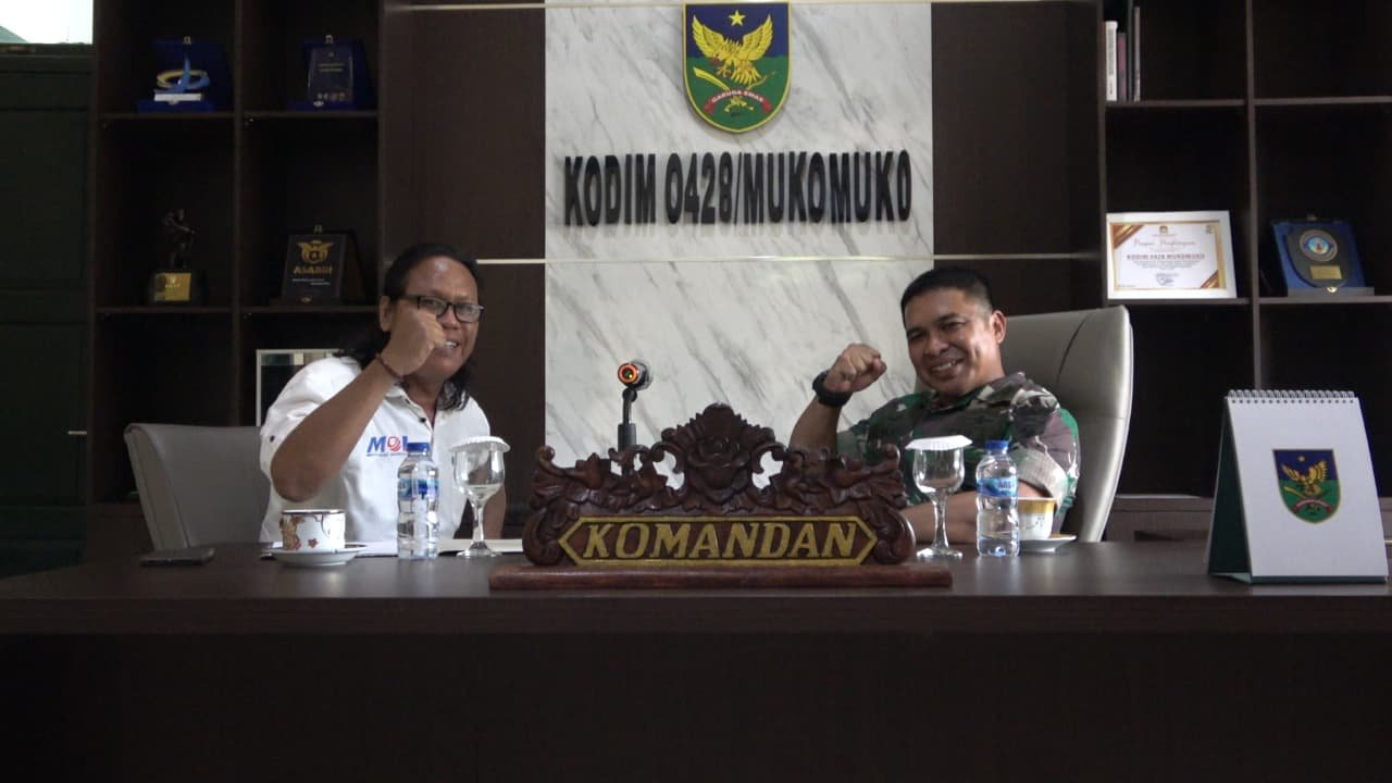 Mukomuko – Dalam rangka menjalin silaturahmi dan juga sekaligus memberikan edukasi kepada seluruh lapisan masyarakat luas melalui jaringan media radio nasional, Komandan Kodim 0428/Mukomuko Letkol Inf Yokki Firmansyah melaksanakan Podcast, yang bertajuk, “Sosialisasi Penerimaan Prajurit TNI Angkatan Darat Tahun Anggaran. 2025 Gratis dan Tidak Dipungut Biaya”, Bertempat di Makodim 0428/Mukomuko, Sabtu (27/09/2025).