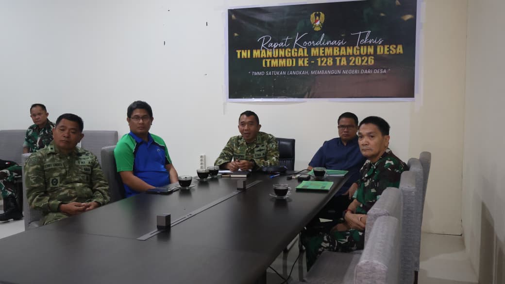 Minahasa Tenggara,– Komandan Kodim 1302/Minahasa, Letkol Inf Bonaventura Ageng F. S, mengikuti video conference (vicon) untuk memaparkan kesiapan program Tentara Manunggal Membangun Desa (TMMD) ke-128 Tahun 2026 kepada Mayjen TNI Mirza Agus. Kegiatan ini berlangsung di Kantor Bupati Kabupaten Minahasa Tenggara, yang terletak di Kelurahan Lowu Utara, Kecamatan Ratahan, pada Jumat, 17 April 2026, dimulai pukul 10.10 WITA.