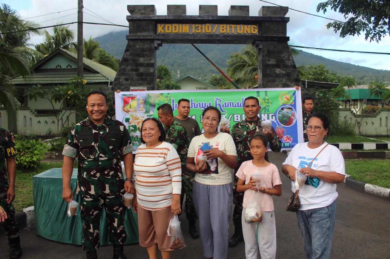 BITUNG – Dalam rangka merayakan bulan suci Ramadhan, anggota dan Persit dari Kodim 1310/Bitung mengadakan kegiatan pembagian Takjil kepada masyarakat di Kota Bitung pada Jumat, 27 Februari 2026. Kegiatan tersebut dihadiri oleh Dandim 1310/Bitung, Letkol Inf Dewa Made DJ, bersama sejumlah pejabat lainnya seperti Pasi Pers, Lettu Inf Yakob Judas, dan Pasi Ops, Lettu Inf Edyzon Kasenda, serta anggota dan Persit Cabang LXII Kodim 1310/Bitung.