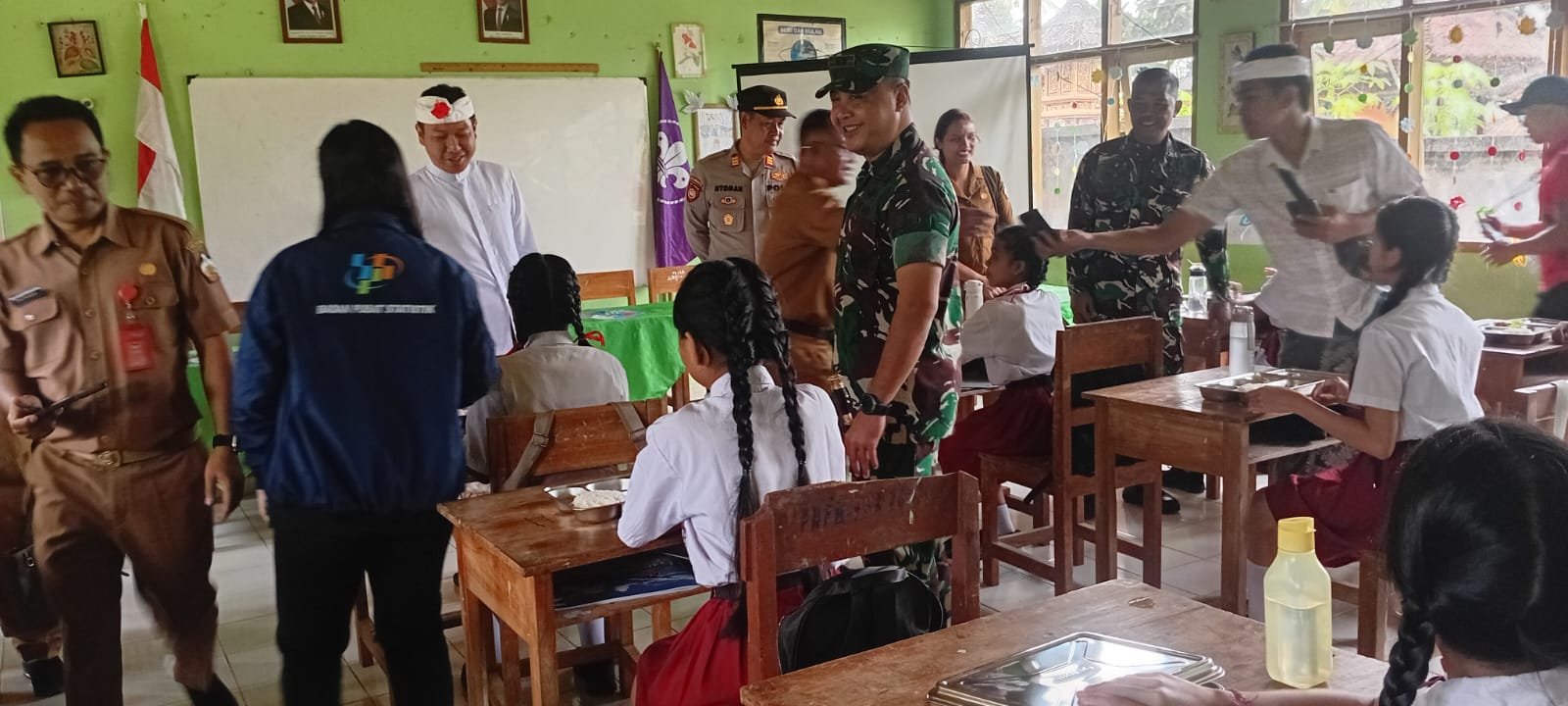 Dandim 1626/Bangli Serahkan Secara Paket Makan Bergizi Gratis di SD Negeri 2 Penglumbaran