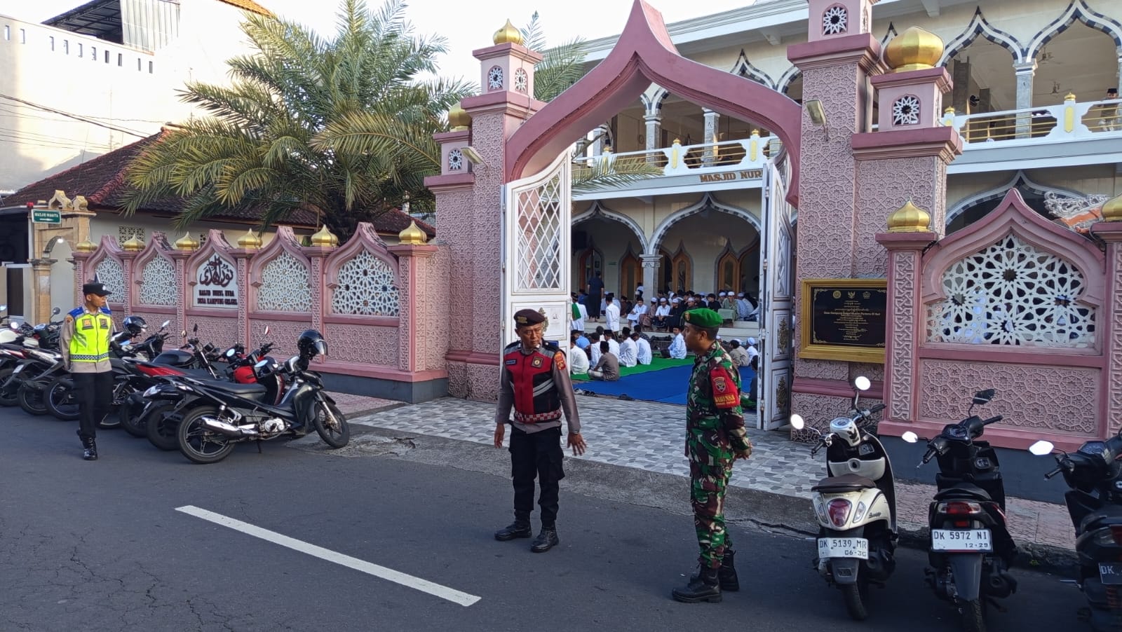 Kedisiplinan ini tercermin saat Dandim menerjunkan anggota untuk mengamankan jalannya Sholat Idul Fitri yang dilaksanakan di Masjid Nurul Huda, Kampung Gelgel, Kecamatan Klungkung, pada hari Sabtu, 21 Maret 2026.