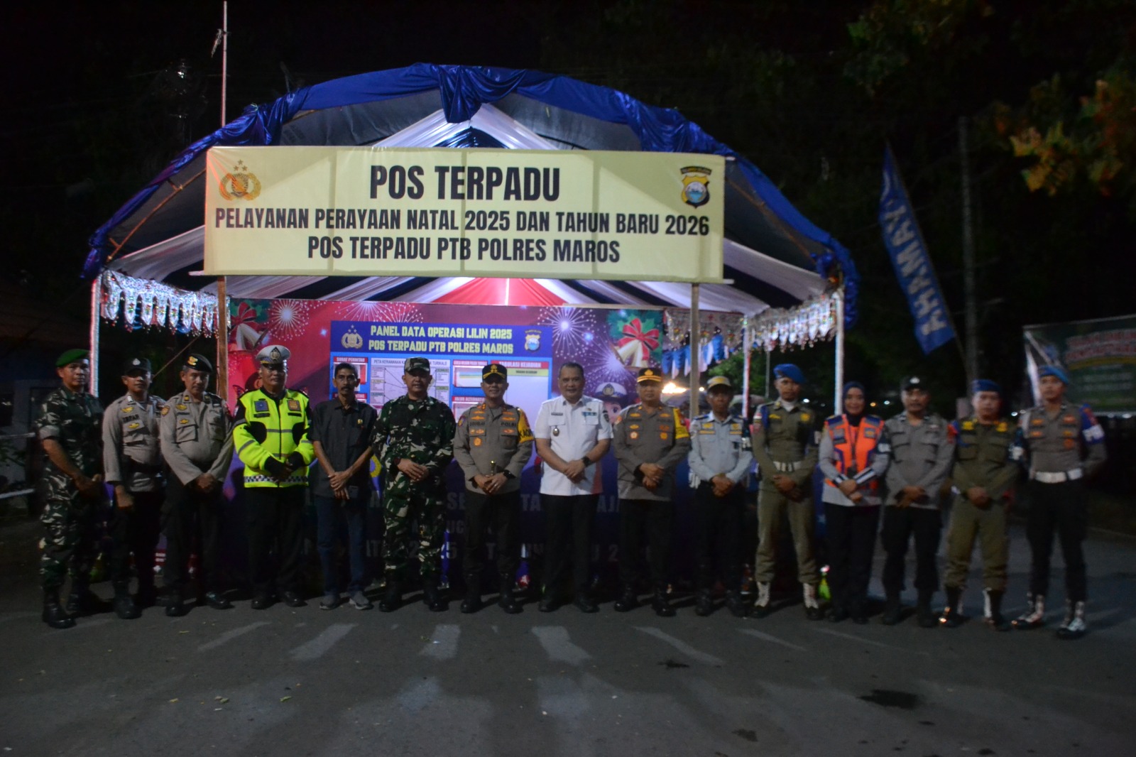 Maros – Dalam upaya menjaga keamanan dan ketertiban selama perayaan Natal 2025, Komandan Kodim 1422/Maros, bersama dengan Forum Koordinasi Pimpinan Daerah (Forkopimda) Kabupaten Maros, melaksanakan peninjauan ke beberapa Pos Pengamanan (Pos Pam) Natal dan Tahun Baru (Nataru) pada Selasa malam, 24 Desember 2025. Peninjauan ini bertujuan untuk memastikan kesiapan petugas gabungan yang terdiri dari TNI, Polri, Satpol PP, Dinas Perhubungan, tenaga kesehatan, dan instansi terkait lainnya.
