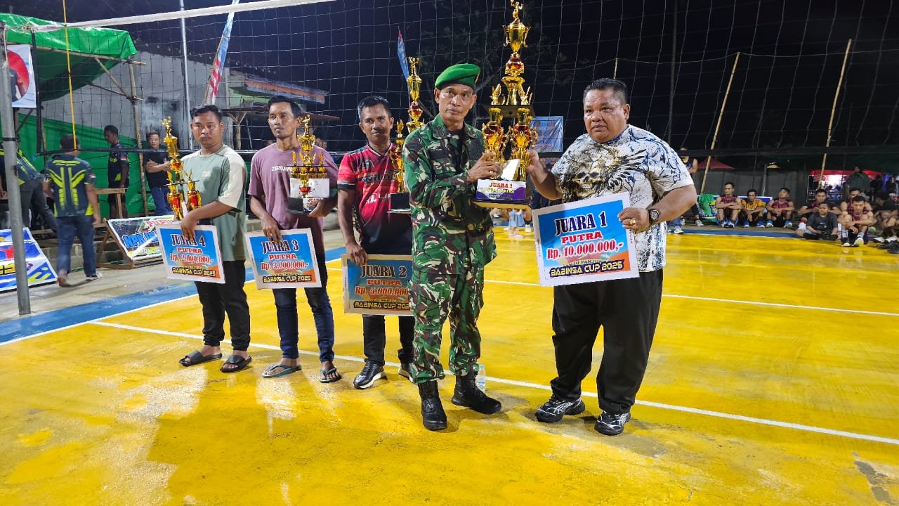 Danramil 1014-05/Pangkalan Banteng Serahkan Piala Juara Turnamen Bola Voli BABINSA CUP III