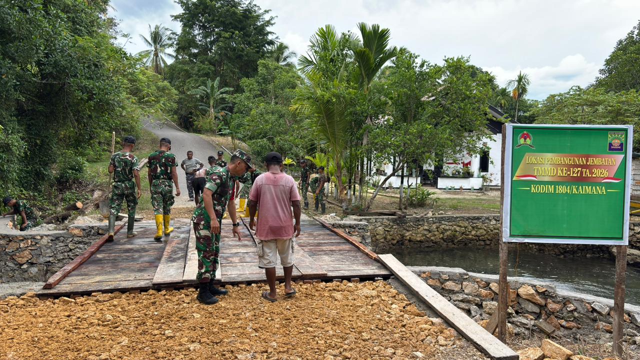 Kaimana – Untuk memastikan kelancaran pembangunan, Komandan Satuan Tugas TNI Manunggal Membangun Desa (TMMD) ke-127 Kodim 1804/Kaimana, Letkol Kav Sulistyo Nugroho, melakukan pengecekan langsung terhadap pembangunan jembatan di Kampung Marsi, Distrik Kaimana, Kabupaten Kaimana, pada Kamis (05/03/2026).