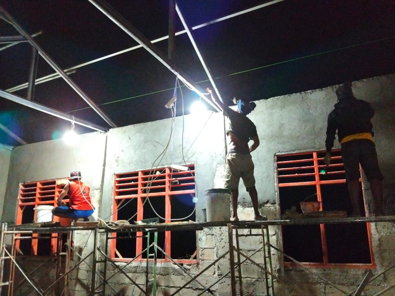 Tahapan pengerjaan pada malam tersebut difokuskan pada proses plester tembok. Setiap detail dinding dirapikan dengan cermat untuk memastikan kekokohan konstruksi sebelum melangkah ke tahap berikutnya. Meskipun pekerjaan berlangsung hingga larut malam, semangat tim dan warga terlihat sangat tinggi.