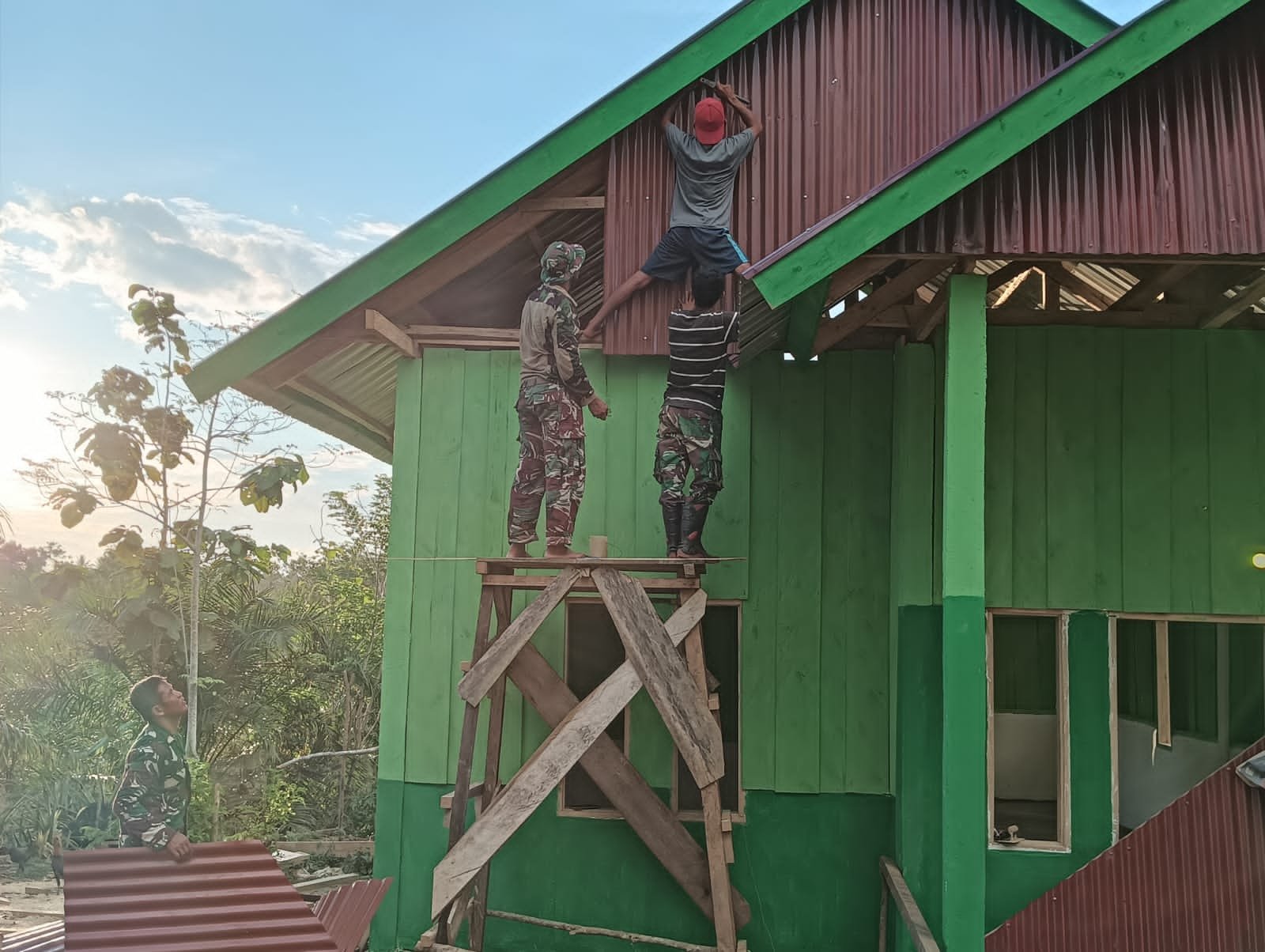 Dengan Semangat Membara, Satgas TMMD Pasang Layang-Layang di Rumah Ibu Hasneni