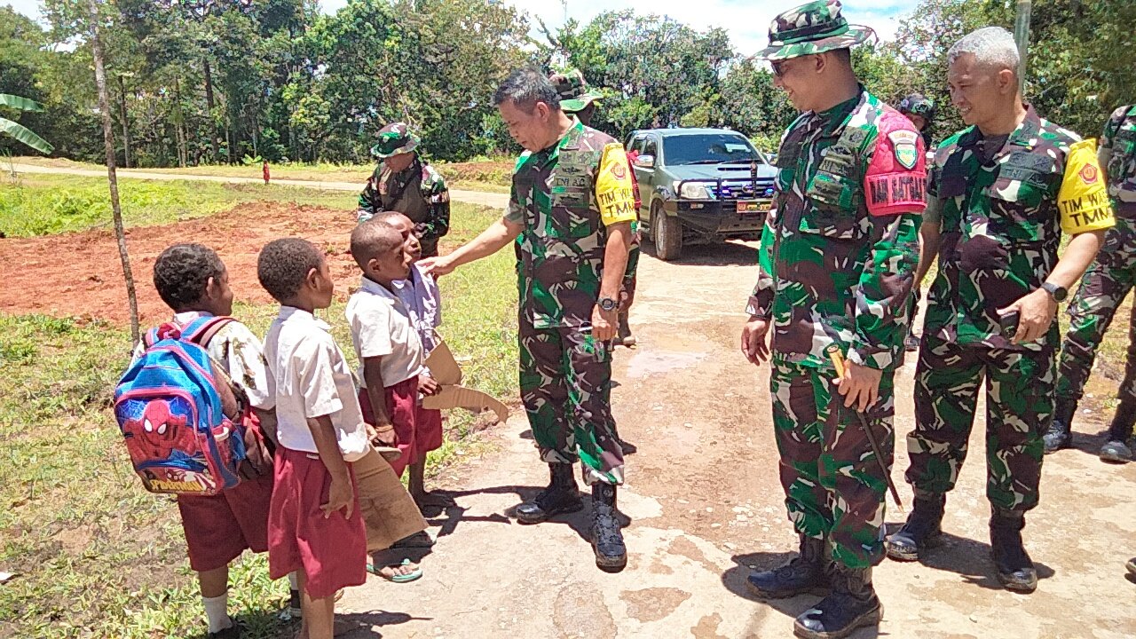 Momen singkat di jalan tersebut menjadi pengingat bahwa di balik tugas-tugas berat pengawasan dan pembangunan, perhatian terhadap pendidikan dan kesejahteraan anak-anak adalah hal yang tak terpisahkan dari pengabdian TNI.