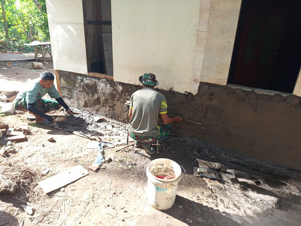 Dinding RTLH Milik Bapak Florianus Mulai Dipelester, Satgas TMMD Kejar Kualitas Bangunan