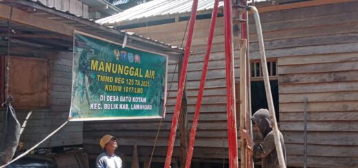 Tulang Bawang – Program TNI Manunggal Membangun Desa (TMMD) ke-125 Kodim 0426/Tulang Bawang terus berjalan sesuai rencana. Salah satu kegiatan utama yakni pembangunan Rumah Tidak Layak Huni (RTLH) di Kampung Moris Jaya, Kecamatan Banjar Agung, masih dalam tahap pengerjaan dinding. Jumat (01/08/2025), Satgas TMMD terus bekerja keras memasang batako sebagai bagian dari pembangunan struktur rumah.