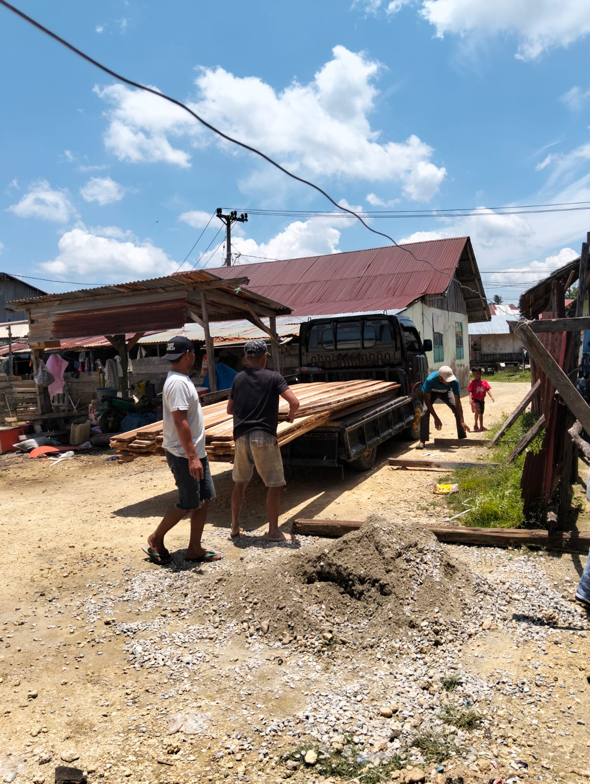 Material yang diangkut meliputi batu batako dan papan kayu, yang akan digunakan untuk pembangunan dinding serta struktur rangka rumah bagi masyarakat yang mendapatkan bantuan.