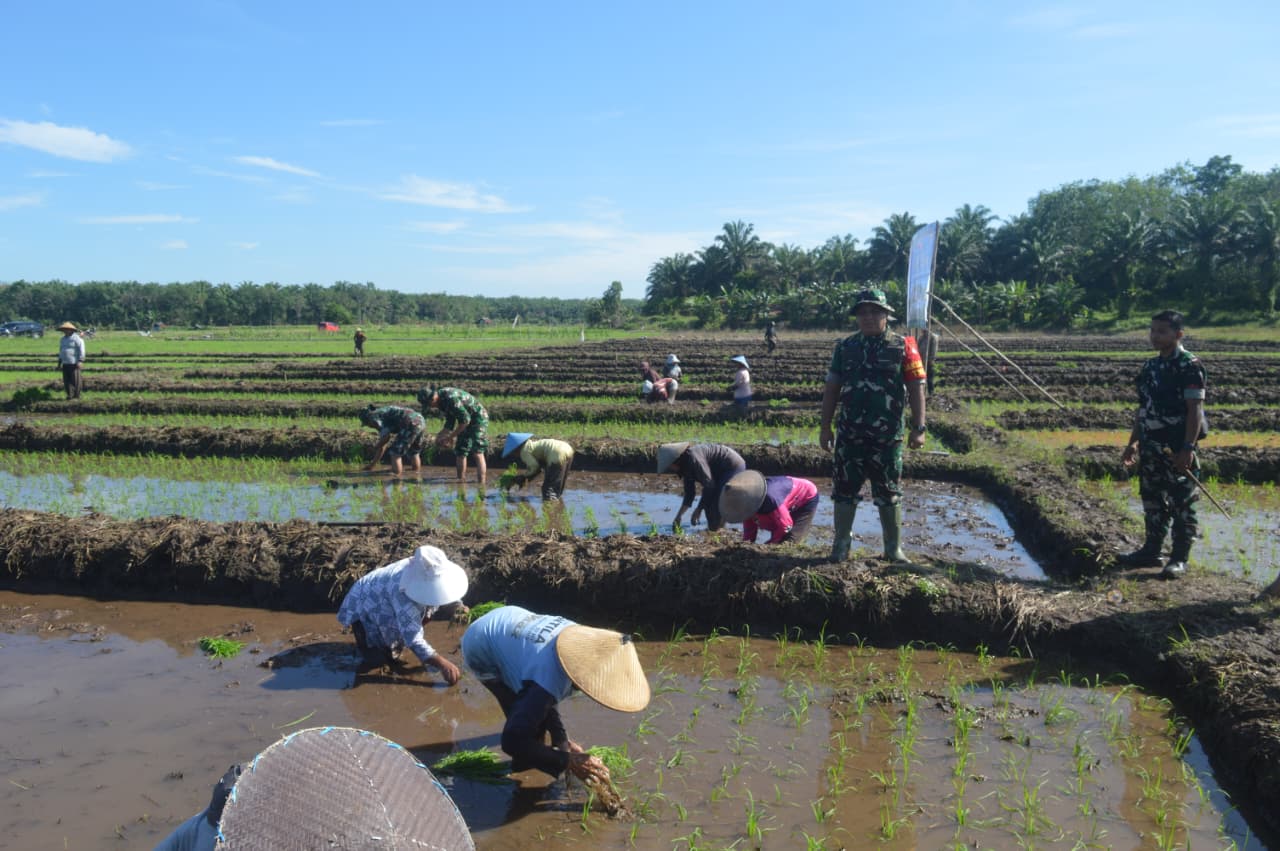 Acara yang dimulai pukul 08.00 WIB ini dipimpin oleh Dandim 1014/Pbn, Letkol Inf Makin S.Sos., M.I.P., dan dihadiri oleh berbagai pihak, seperti Kasdim 1014/Pbn, Danramil 1014-05/Pangkalan Banteng, serta sejumlah petani dari kelompok tani Sumber Rejeki dan Harapan Makmur, dengan total pesertanya mencapai sekitar 50 orang.