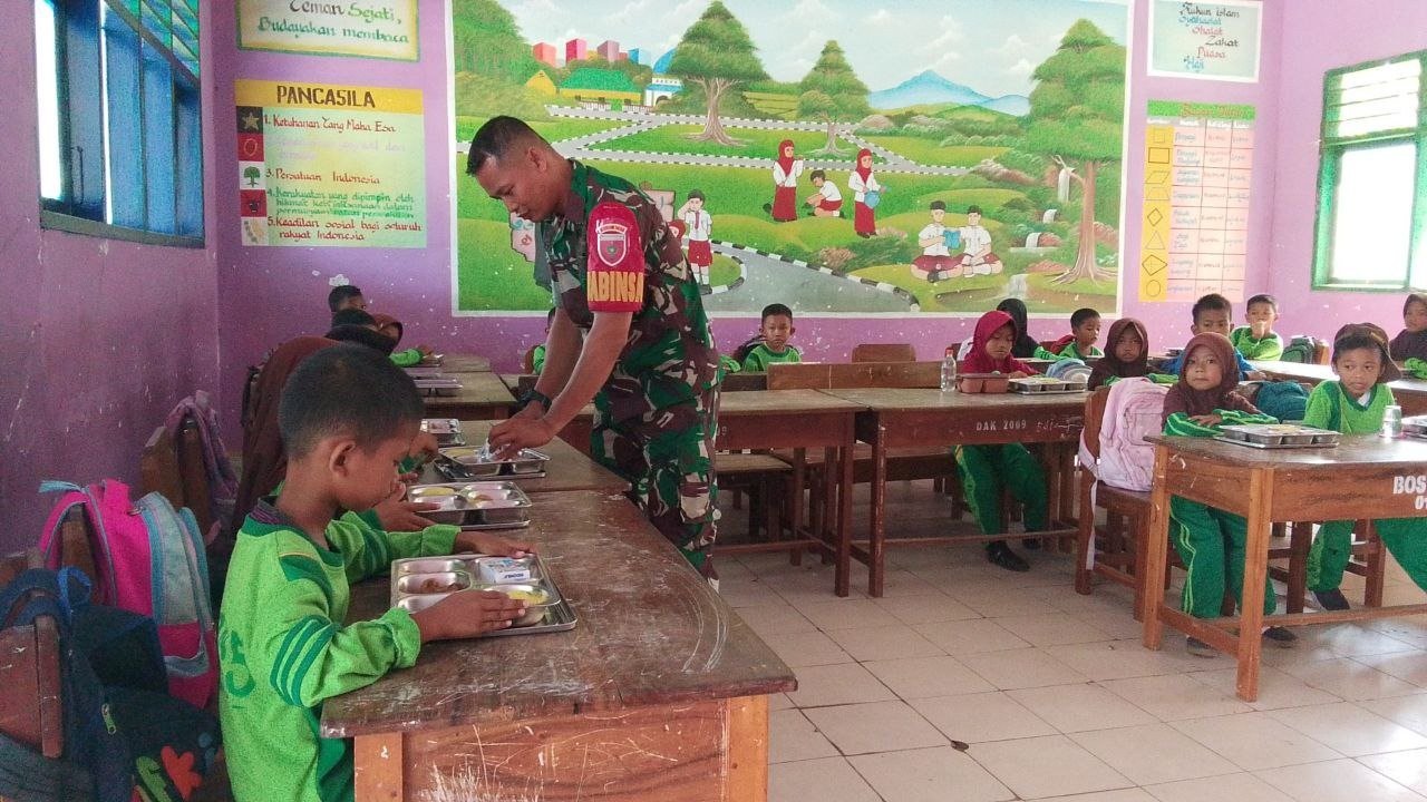 Dukung Program Pemerintah, Babinsa Dampingi Pembagian Makan Bergizi Gratis