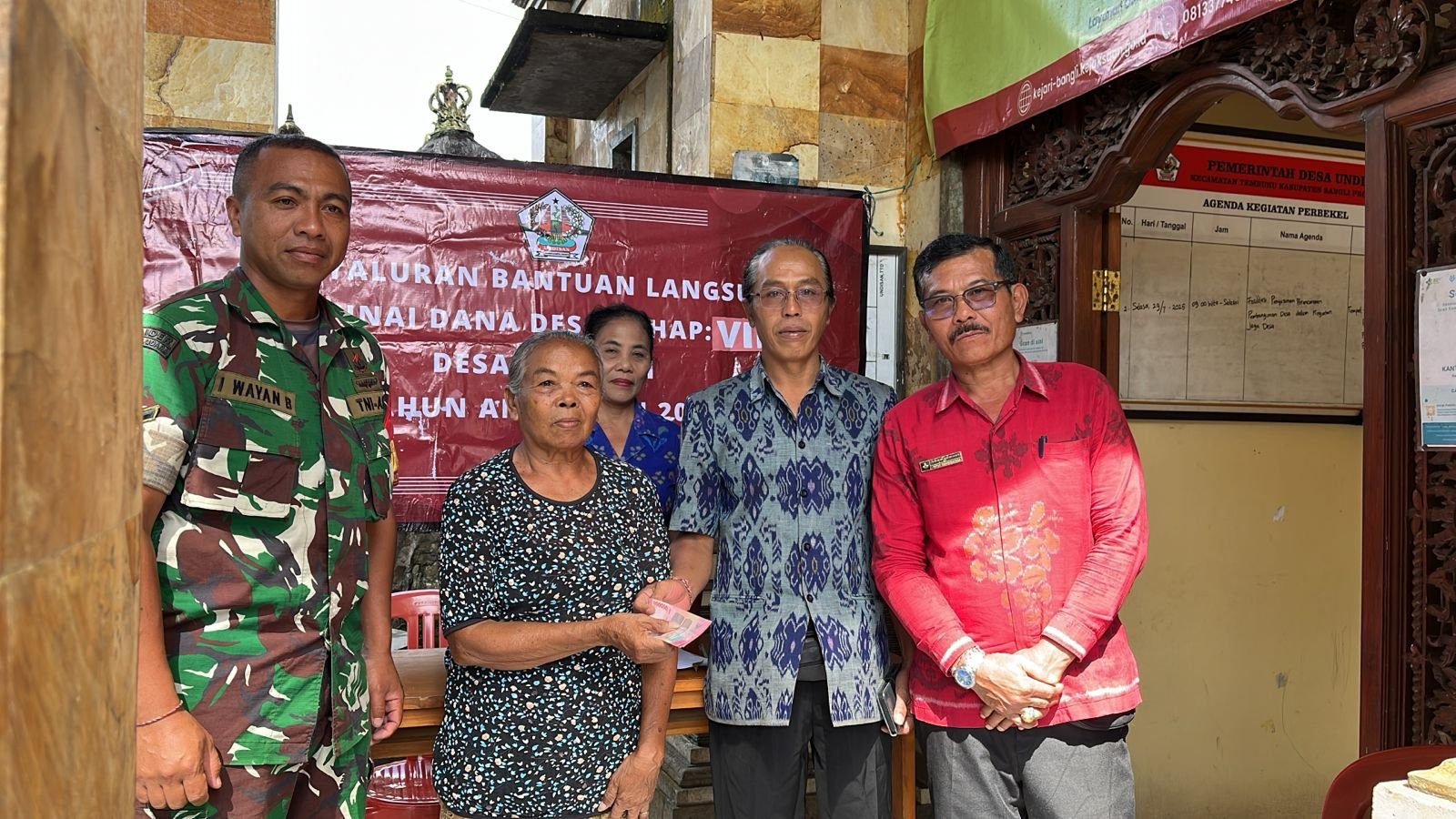 Bangli – Babinsa Desa Undisan Koramil 1626-03/Tembuku Koramil 1626/Bangli Serda I Wayan Budiarta menghadiri sekaligus melaksanakan pendampingan kegiatan penyaluran bantuan langsung tunai dana desa (BLT DD) tahap VII tahun 2025 kepada warga kurang mampu bertempat di Kantor Desa Undisan Kecamatan Tembuku Kabupaten Bangli, selasa (15/07/2025)