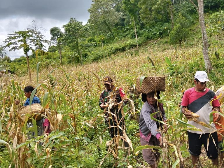 Dukungan Babinsa Sumba Barat untuk Ketahanan Pangan Melalui Panen Jagung