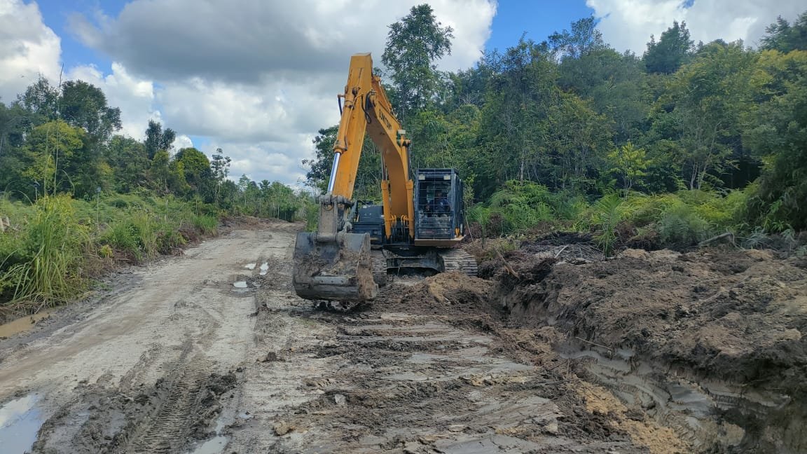 Barito Selatan – Progres pembukaan jalan yang menjadi salah satu sasaran fisik dalam program TMMD Ke-124 Kodim 1012/Buntok terus berjalan. Bertempat di Desa Wungkur Baru, Kecamatan Gunung Bintang Awai, alat berat excavator tak hanya fokus pada pembentukan badan jalan, tetapi juga mulai mengerjakan pembuatan saluran air (drainase) di sisi jalan.