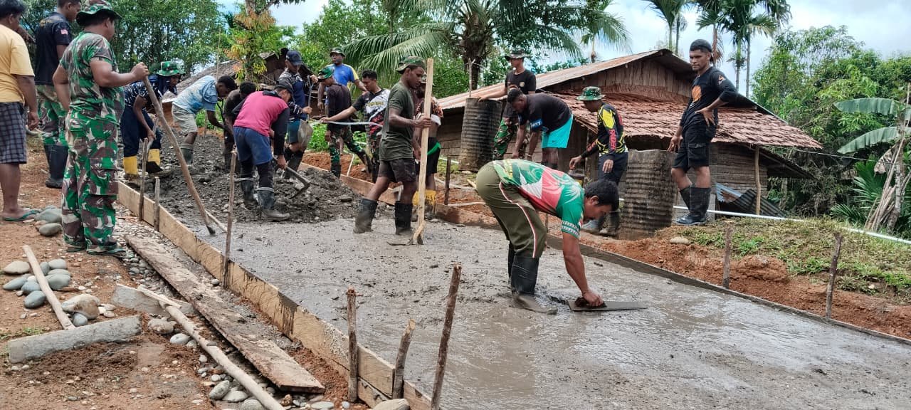 Aktivitas pengecoran terlihat padat pada Selasa (21/10/2025), melibatkan prajurit TNI bersama masyarakat setempat. Pengerjaan ini disambut antusias oleh warga karena jalan yang dicor merupakan akses vital bagi mereka.