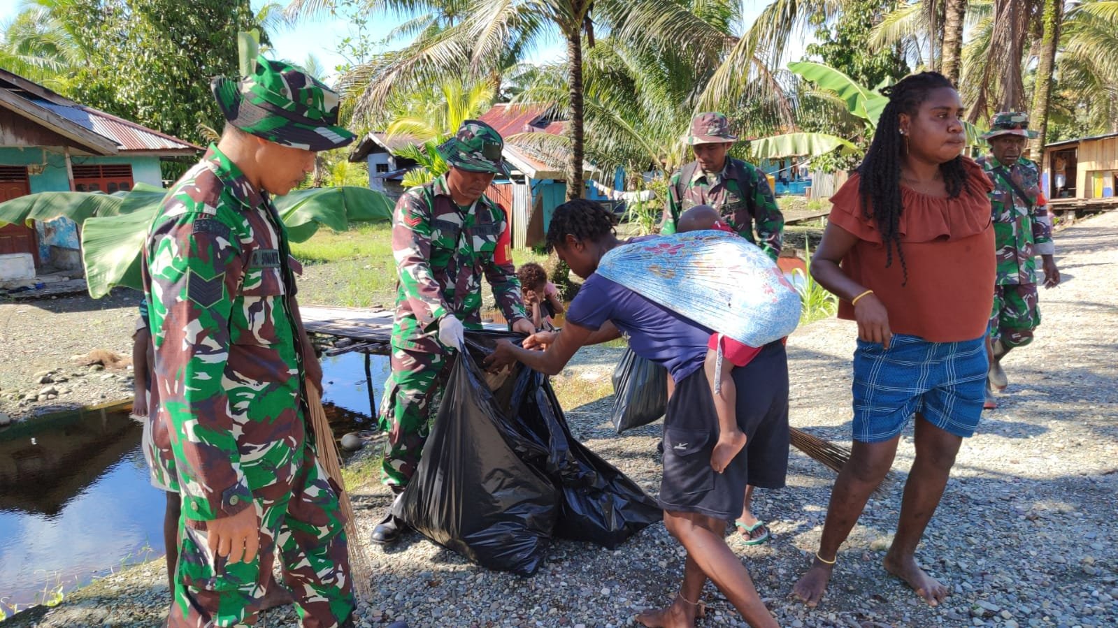 Mimika, Papua – Tak hanya membangun jalan dan fasilitas fisik lainnya, Satgas TMMD Reguler ke-124 Kodim 1710/Mimika juga membangun kesadaran warga akan pentingnya hidup bersih dan sehat. Hal ini terlihat dalam aksi bersih-bersih lingkungan yang digelar bersama masyarakat di Kampung Pigapu, Distrik Iwaka, Kabupaten Mimika, Rabu (21/5/2025).