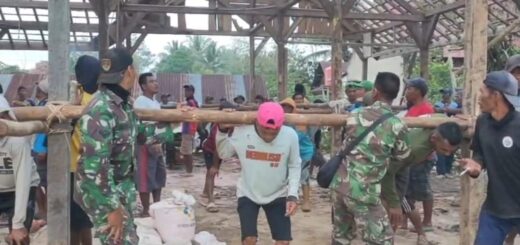 Barito Selatan – Satuan Tugas (Satgas) TNI Manunggal Membangun Desa (TMMD) ke 124 Kodim 1012/Buntol yang tengah membangun jembatan sasaran dalam proses pemasangan tiang dan Cerucuk, Bertempat di Jalan Talio, Kecamatan Karau Kuala, Kabupaten Barito Selatan, Pada hari Sabtu (10/05/2025)