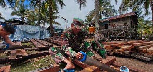 Mimika — Semangat gotong royong kembali terlihat dalam pelaksanaan pembangunan rumah pada program TMMD ke-128 Kodim 1710/Mimika di Kampung Keakwa.