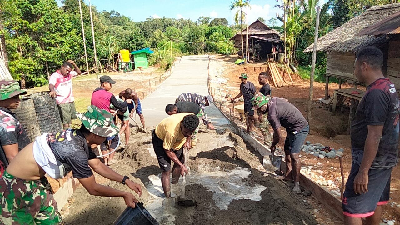 Gotong Royong Satgas TMMD 125 dan Warga Kebut Pengecoran Jalan di Kampung Waropko