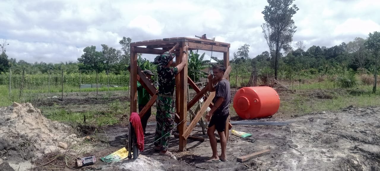 Gotong Royong Satgas TMMD dan Warga Bangun Tandon Air di Desa Wungkur Baru