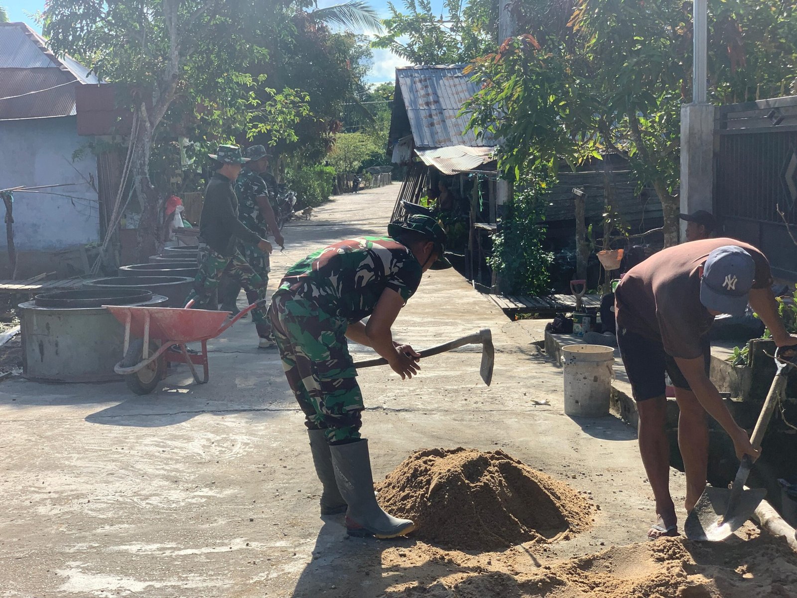 Gotong Royong Satgas TMMD dan Warga Desa Talio Aduk Semen untuk Sumur Galian