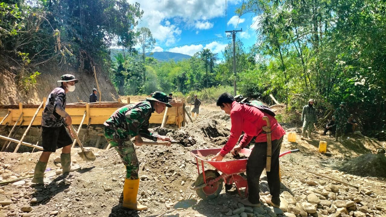 Gotong Royong Satgas TMMD dan Warga Ueesi Wujudkan Pembangunan 12 Duiker