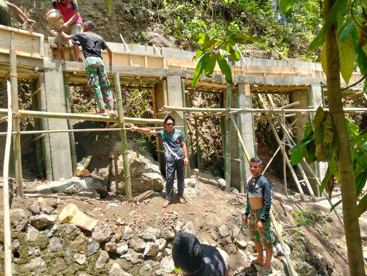 Gotong Royong Satgas TMMD Kodim 1612/Manggarai dan Warga Riung Genjot Pengecoran Irigasi