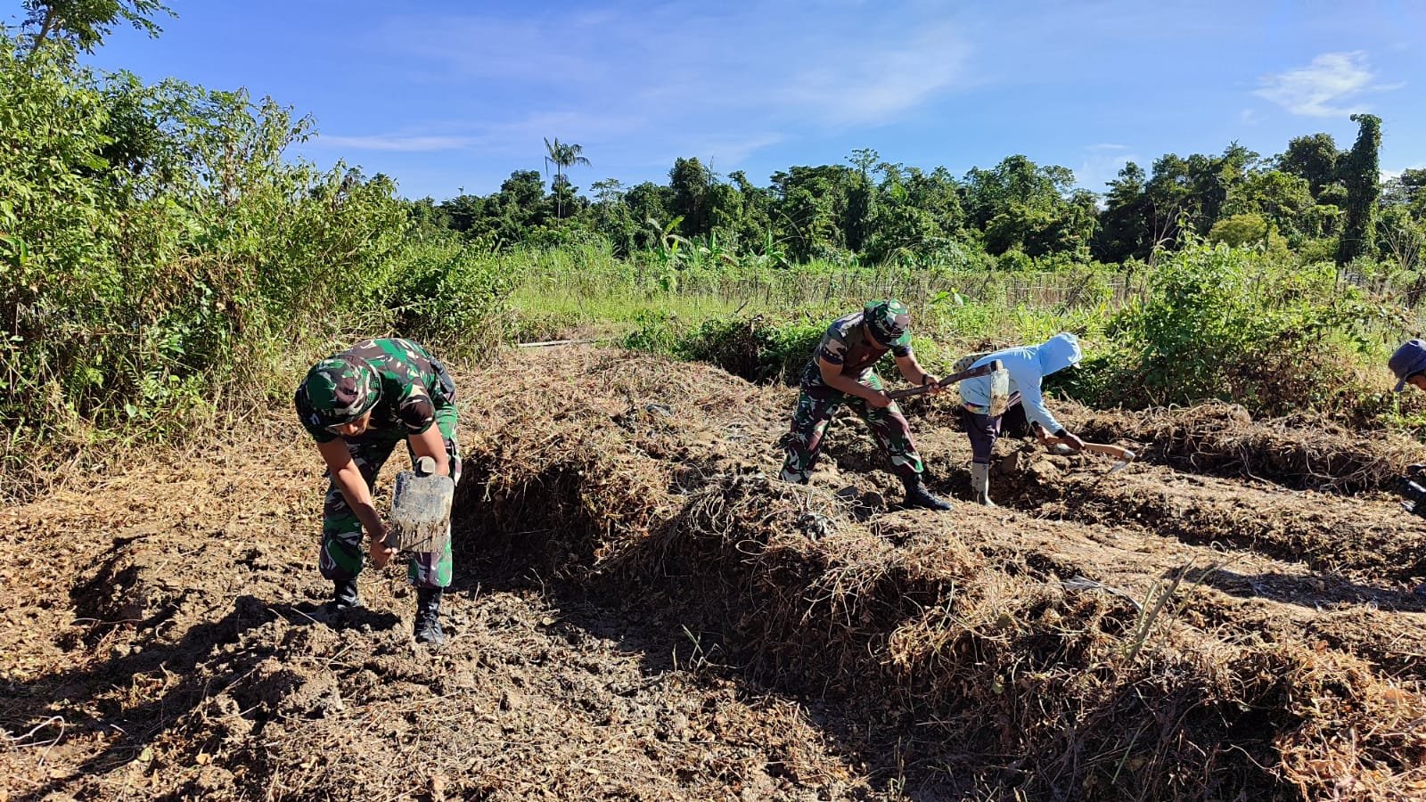“Kami senang bisa ikut bekerja sama dengan bapak-bapak TNI. Semoga hasil tanam nanti bisa membantu kebutuhan makan dan ekonomi kami,” ujarnya.