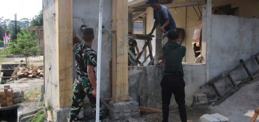 Terlihat dalam gambar, personel Satgas TMMD bersama warga bahu-membahu memasang papan kayu sebagai dinding rumah. Progres pembangunan RTLH ini menunjukkan kemajuan signifikan dan optimisme tinggi dari pihak Satgas.