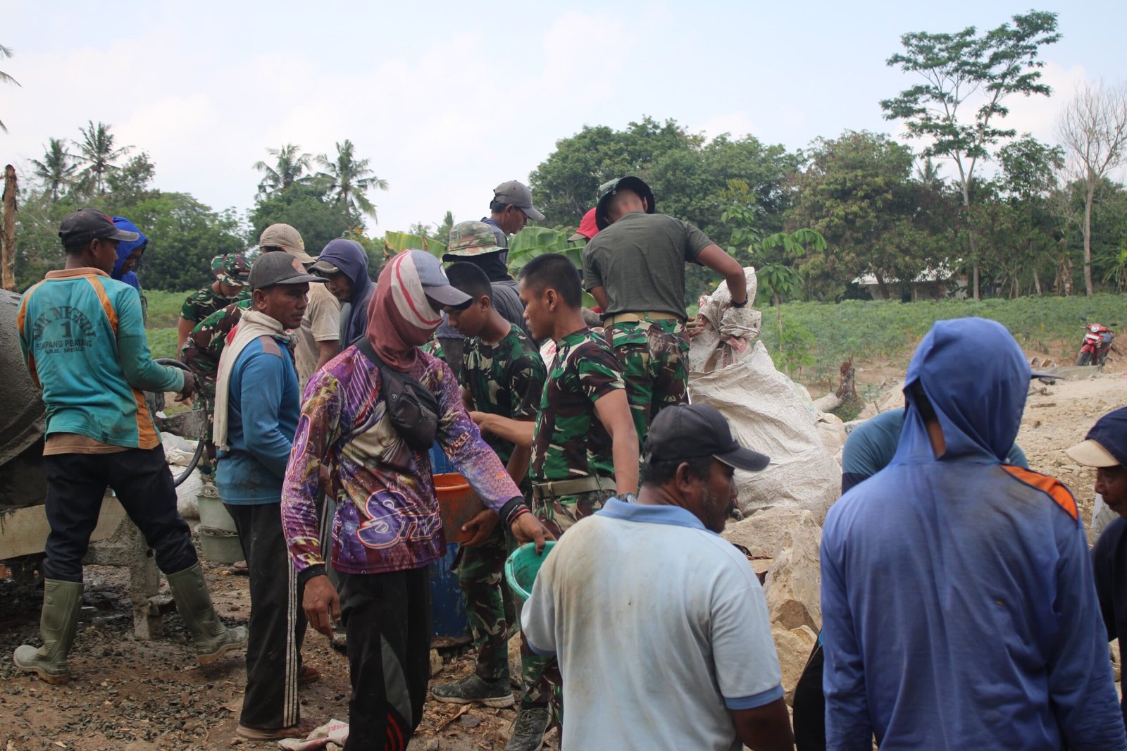Tulang Bawang – Semangat gotong royong terlihat di lokasi pembangunan jembatan yang menjadi salah satu sasaran kegiatan fisik TNI Manunggal Membangun Desa (TMMD) ke-125 Kodim 0426/Tulang Bawang. Jembatan dengan panjang lima meter dan lebar dua meter tersebut sedang dalam tahap pemasangan besi, yang nantinya akan dilanjutkan dengan proses pengecoran.