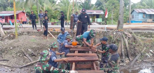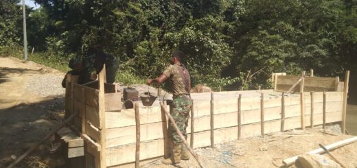 Tulang Bawang – Semangat gotong royong terlihat di lokasi pembangunan jembatan yang menjadi salah satu sasaran kegiatan fisik TNI Manunggal Membangun Desa (TMMD) ke-125 Kodim 0426/Tulang Bawang. Jembatan dengan panjang lima meter dan lebar dua meter tersebut sedang dalam tahap pemasangan besi, yang nantinya akan dilanjutkan dengan proses pengecoran.