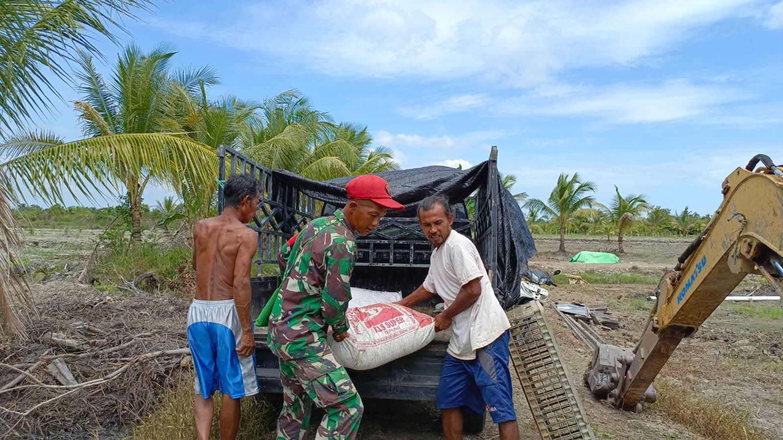 Mempawah – Kebersamaan antara Babinsa dan warga kembali terlihat di lokasi demplot ketahanan pangan TMMD Ke-124 di Desa Sungai Purun Kecil. Kali ini, mereka bersama-sama mengangkut pakan bebek petelur yang baru saja tiba untuk menunjang budidaya yang telah dimulai beberapa hari lalu.