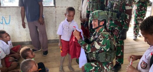 Personel satgas TMMD bekerja berdampingan dengan warga, saling membantu memindahkan material dan memastikan setiap titik jalan yang berlubang tertutup sempurna. Proses ini memerlukan ketelitian agar timbunan padat dan tidak mudah rusak saat dilalui kendaraan.