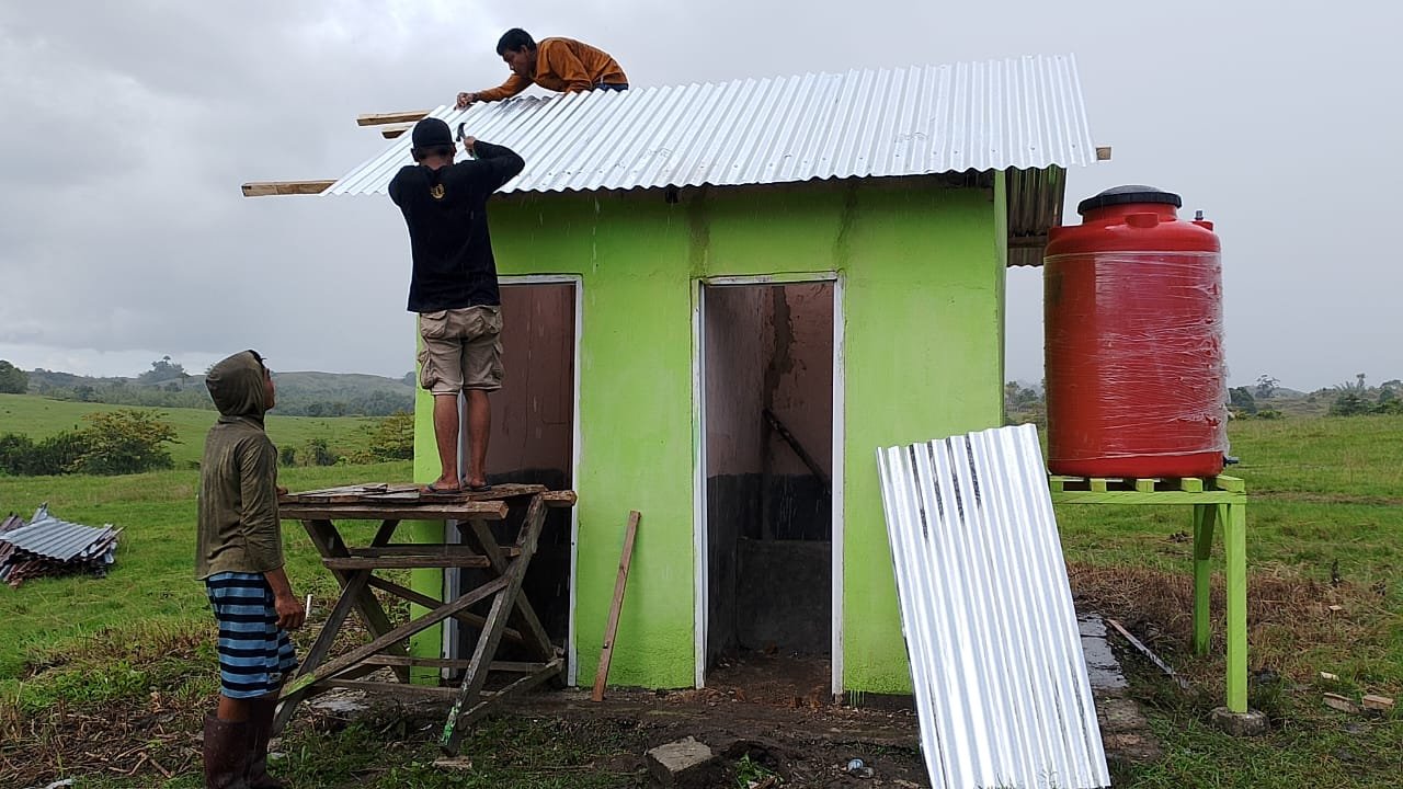 Hari ke-23 Satgas TMMD ke-124 Kodim 1431/Bombana Pasang Atap MCK Masjid Al-Mukmin