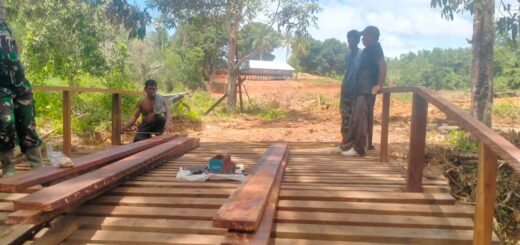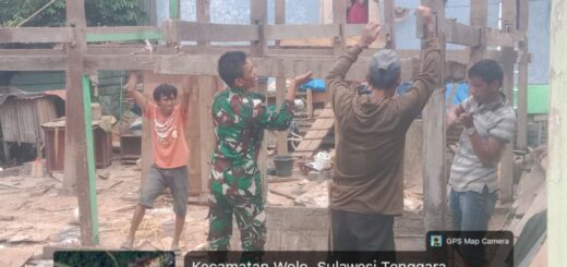 Satgas TMMD dan warga tampak kompak di lapangan. Mereka saling membantu mengangkat material, memotong lisplang sesuai ukuran, dan memastikan pemasangan berjalan rapi dan kuat. Cuaca yang cerah menjadi faktor pendukung lancarnya pekerjaan di hari keenam ini.