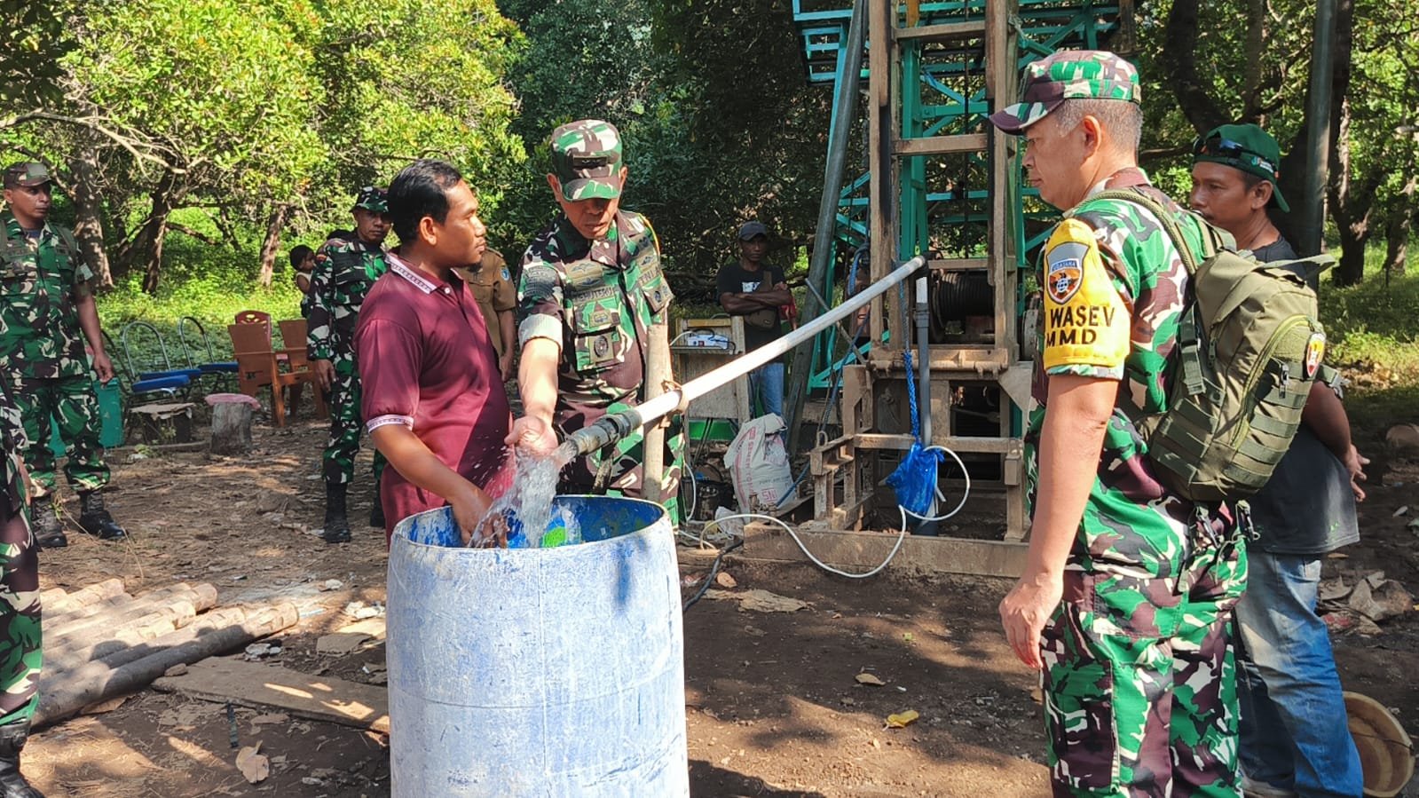 Dalam kunjungan tersebut, Mayjen TNI Christian Kurnianto Tehuteru menyaksikan proses pengeluaran air dari sumur yang telah mencapai kedalaman maksimal.
