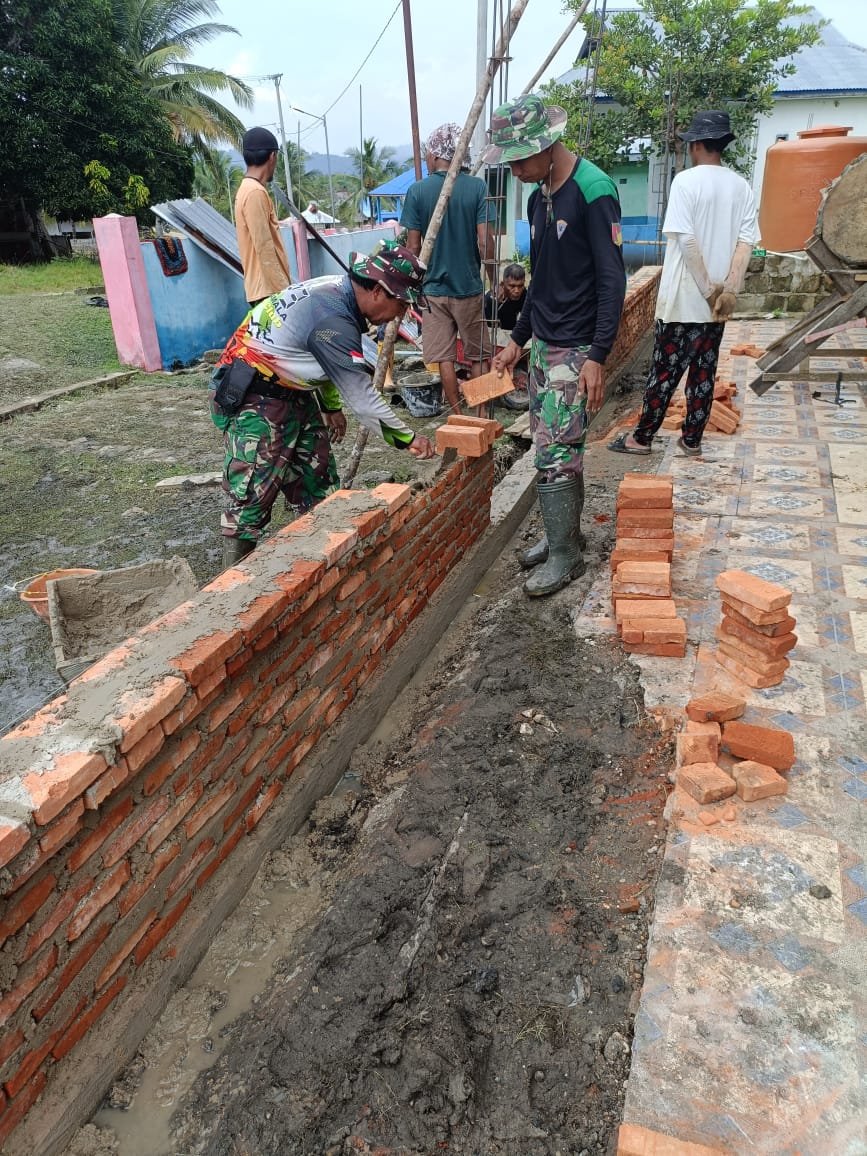 Hari Keempat Satgas TMMD dan Masyarakat Pasang Batu Bata Teras Masjid Al-Mukmin
