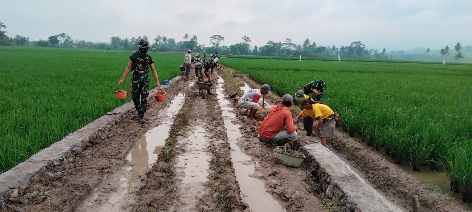 Pembangunan jalan rabat beton, yang merupakan akses penting bagi warga, mencapai sekitar 90 meter. Sementara itu, pembangunan talud untuk mencegah longsor juga berkembang pesat, dengan capaian sekitar 130 meter. Kegiatan ini dilaksanakan secara gotong royong oleh personel Satgas TMMD dan masyarakat, mencerminkan semangat kemanunggalan TNI dengan rakyat.
