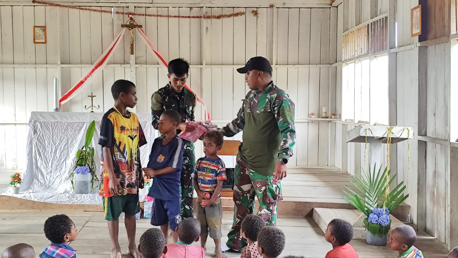 Ibadah Bersama di Pos Tarup, TNI Gelar Lomba Cari Telur untuk Anak-anak
