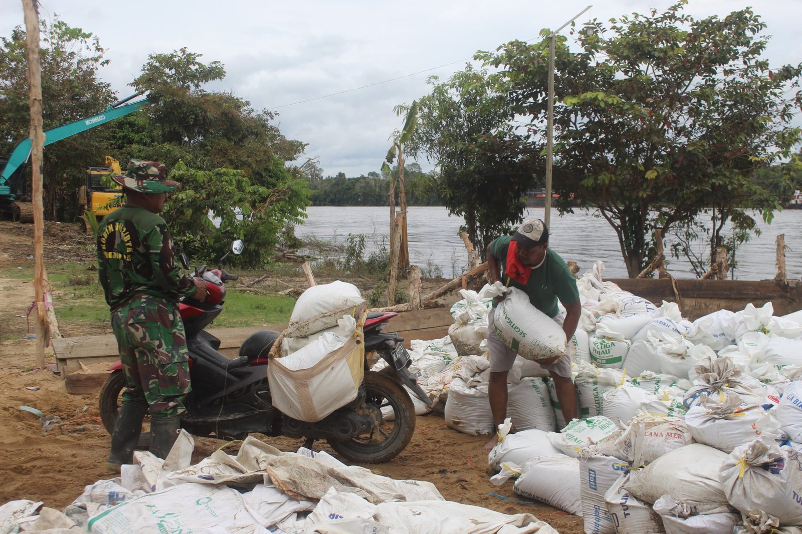 Dengan karung berisi sirtu yang diikat di belakang motor, para prajurit menyusuri jalur menantang untuk mengantarkan material ke lokasi pengecoran. Warga pun turut membantu menggunakan motor mereka sendiri, memperlihatkan sinergi nyata antara TNI dan masyarakat.