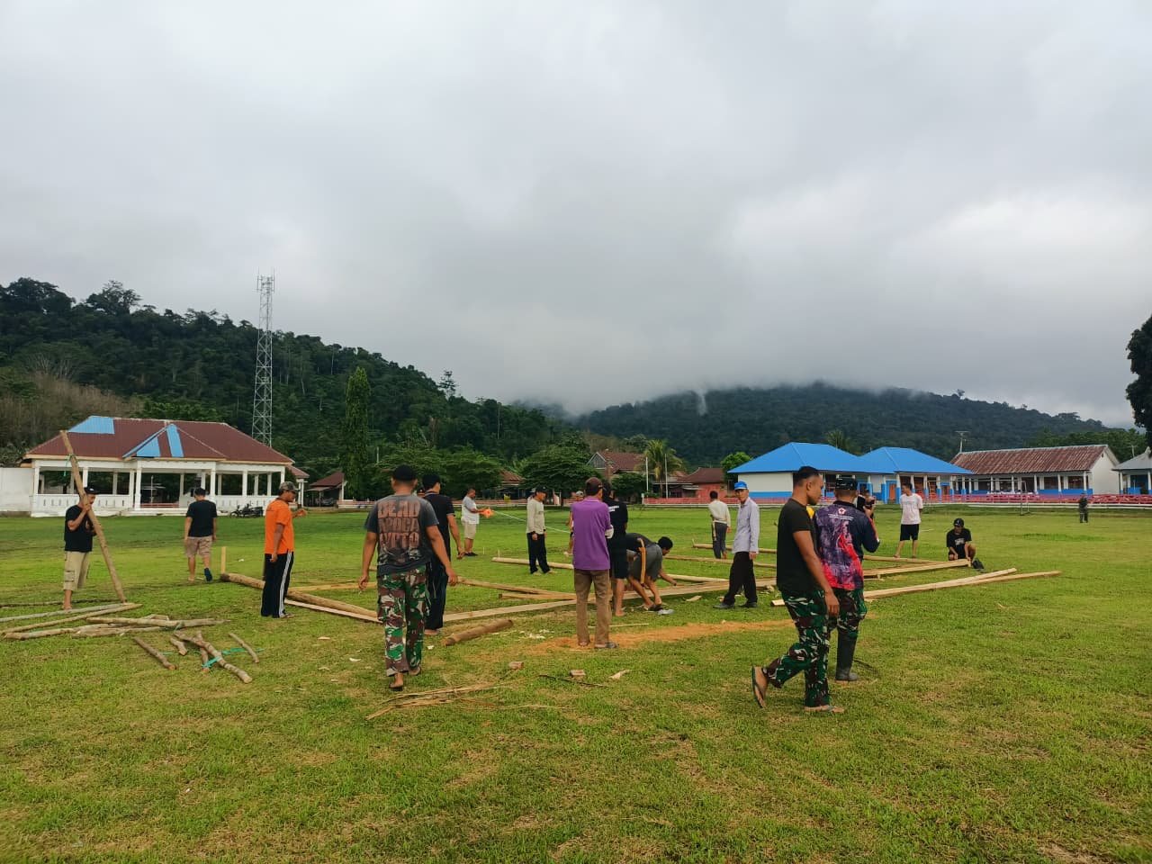 Tanggauna, 03 November 2026 – Menjelang berakhirnya Program TNI Manunggal Membangun Desa (TMMD) ke-126, suasana gotong royong kembali terlihat di Desa Tanggauna. Anggota Satgas TMMD bersama masyarakat setempat mulai melakukan pembersihan dan penataan lapangan yang akan digunakan sebagai lokasi upacara penutupan.