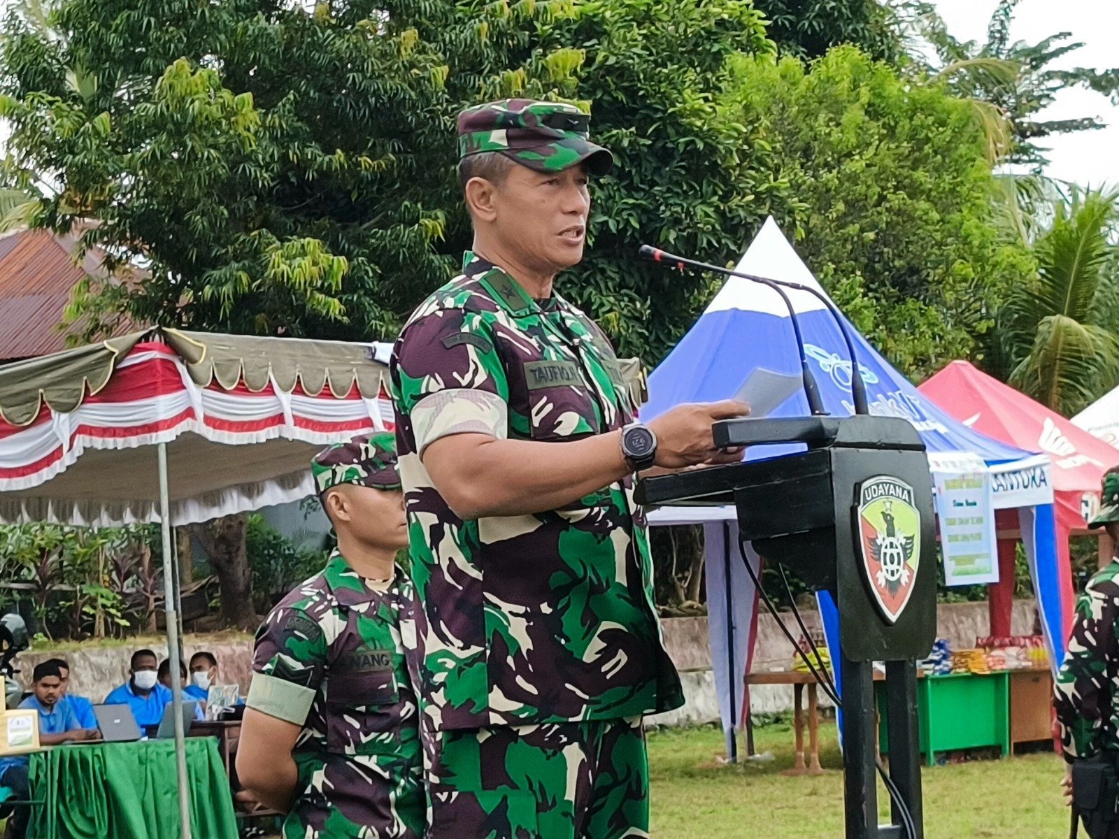 Dalam amanatnya, Brigjen TNI Taufik Hanafi membacakan sambutan Pangdam IX/Udayana, Mayjen TNI Piek Budyakto, yang menyampaikan bahwa TMMD ke-124 dengan tema “Dengan Semangat TMMD Mewujudkan Pemerataan Pembangunan dan Ketahanan Nasional di Wilayah”, telah memberikan dampak nyata bagi percepatan pembangunan dan peningkatan kesejahteraan masyarakat.